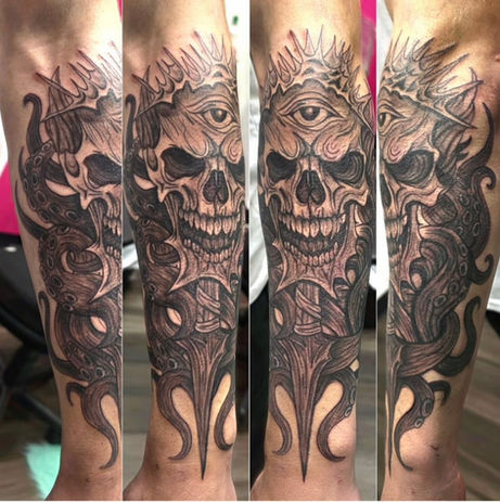 Miia is a first year apprentice with a heavy hitting style and a sharp eye for detail. If you’re into Bold Black work, Gothic motifs, and Illustrative designs inspired by punk and American Traditional, she is the artist for you!!